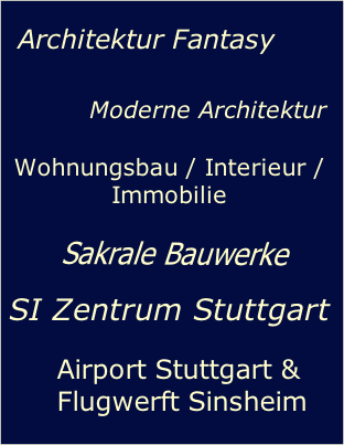 Architekturback to topArchitektur FantasyModerne ArchitekturWohnungsbau / Interieur / ImmobilieSakrale BauwerkeSI Zentrum StuttgartAirport Stuttgart &  Flugwerft Sinsheim