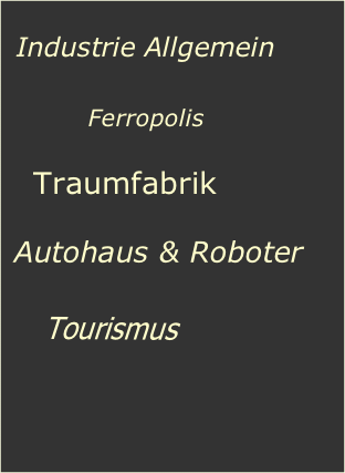 Industrie & BusinessIndustrie AllgemeinFerropolisTraumfabrikAutohaus & RoboterTourismusKunst und Handwerk